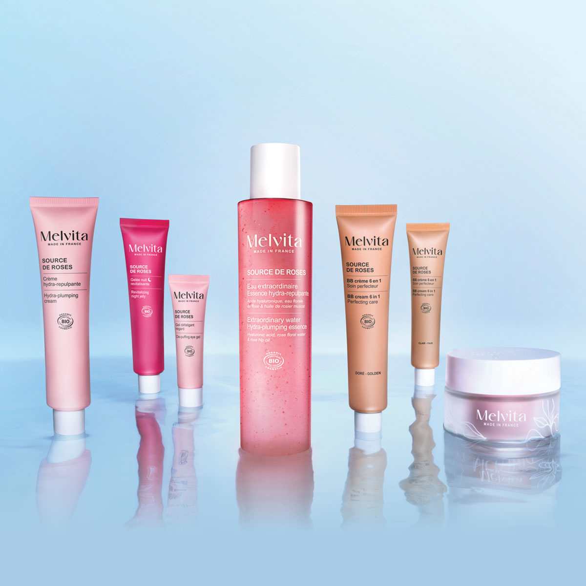Melvitina kolekcija Source de Roses stvorena je za ritam svakodnevice: kratka rutina, vidljiv učinak i certified-organic formule koje koža voli. Dvije zvijezde – Izuzetna vodica Source de Roses i Hidratantna krema za zaglađenu kožu – rade kao pametan duet za trenutačnu punoću i dugotrajnu hidrataciju lica.